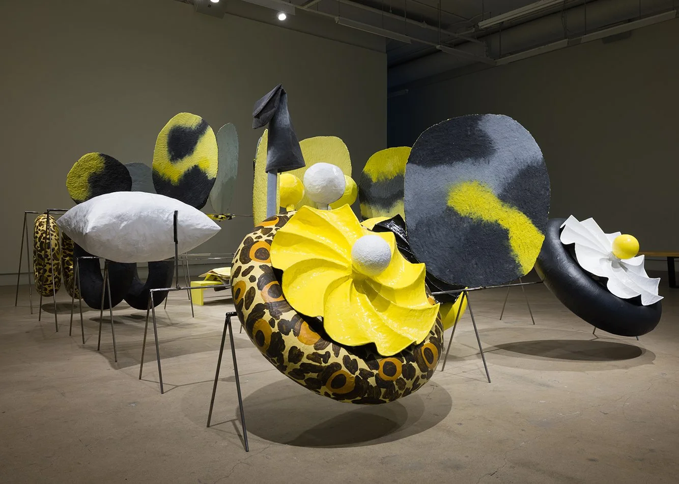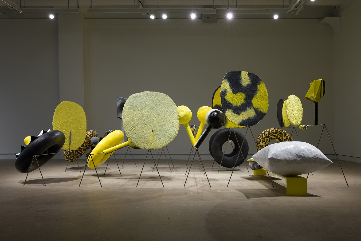 In Nerf Nerf, Madeleine Mayo presents a large machine-like sculpture installation — a super-tool for these anxious times. Mayo imagines a drama of physical form, based on a variety of discreet personal tools made for self-soothing, and the repetitive gestures acted out in her own creative practice. Through colour, tactility, and ambiguous shape relationships, this super-tool implies movement and manipulates a whole cast of nervous sensations; seeking out curious and uncertain benefits in the process.